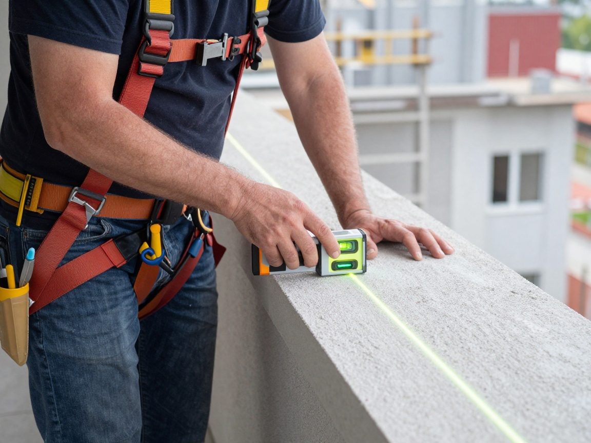 Balkonflur wird auf Ebenheit geprüft