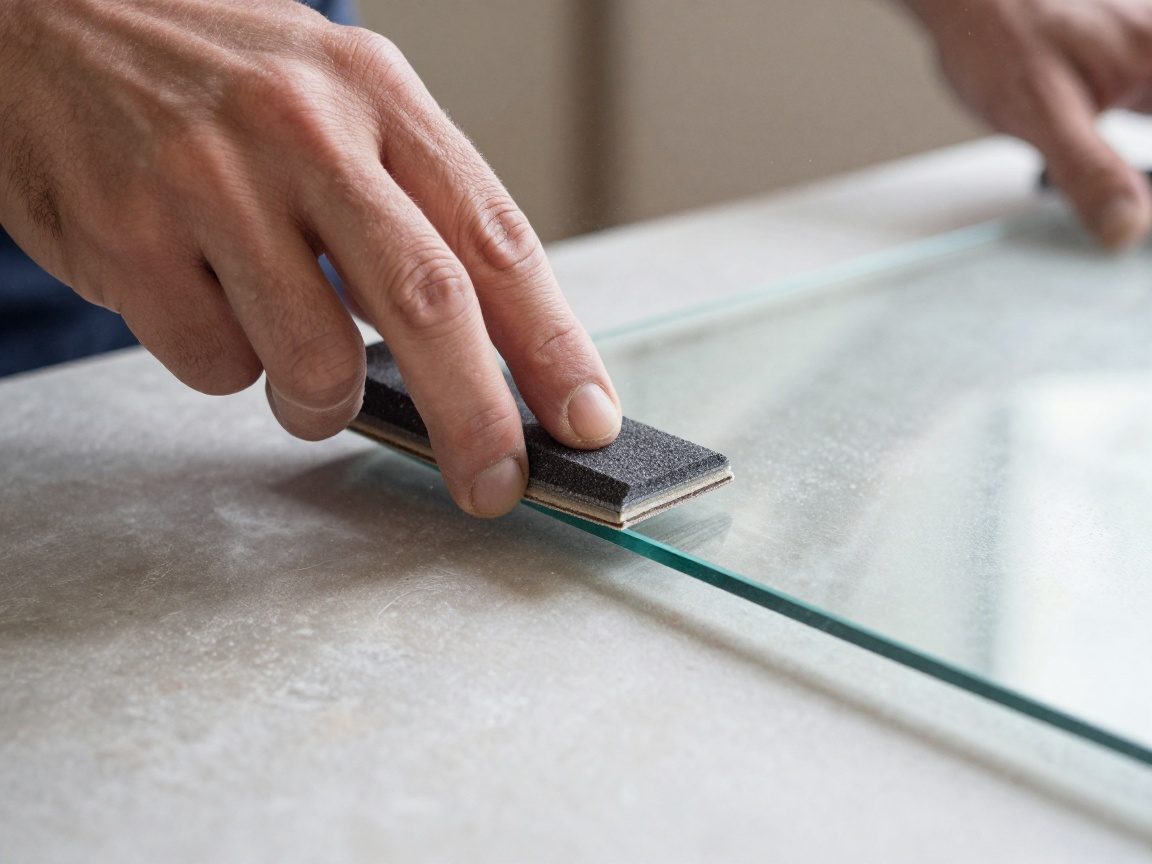 Schleife die Kanten des Glases, um sie zu glätten und zu entgraten. Dadurch werden scharfe Kanten entfernt und die Sicherheit erhöht.