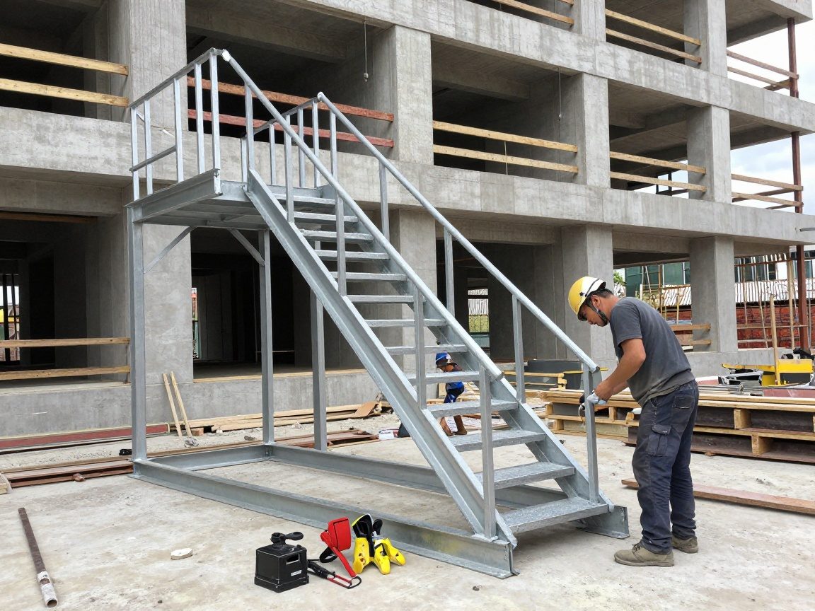 Die Montage der Treppe muss präzise und fachgerecht erfolgen. Achtet auf eine solide Befestigung und die Einhaltung der Sicherheitsvorschriften.