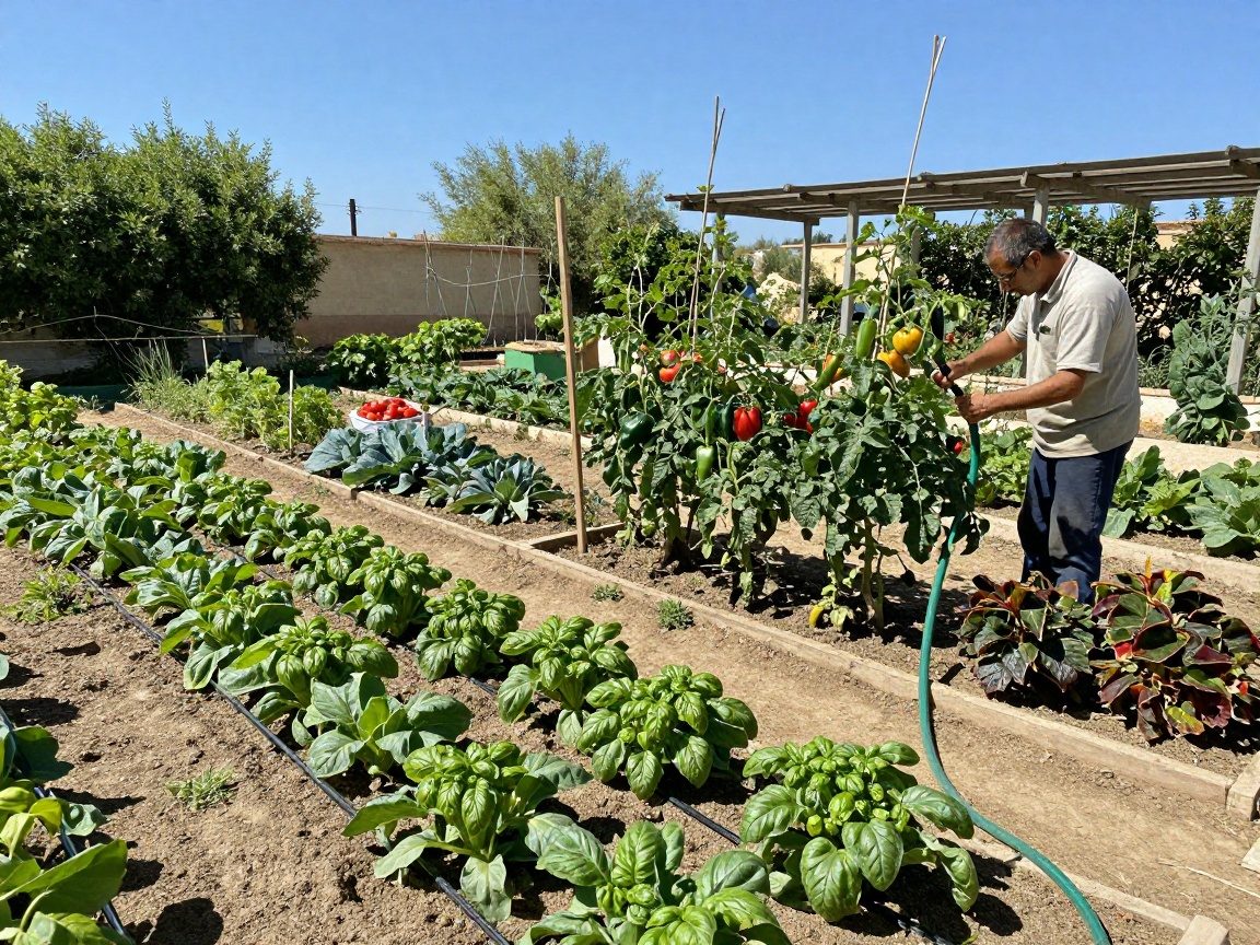 Erfahre, wie Tropfbewässerung 30 % Wasser spart und Pflanzen vor Staunässe schützt – ideal für Gemüsebeete in mediterranem Klima.