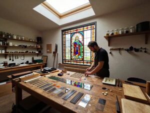 Die Kunst der Glasauswahl: Farben und Strukturen für Bleiglaserei im Designprozess