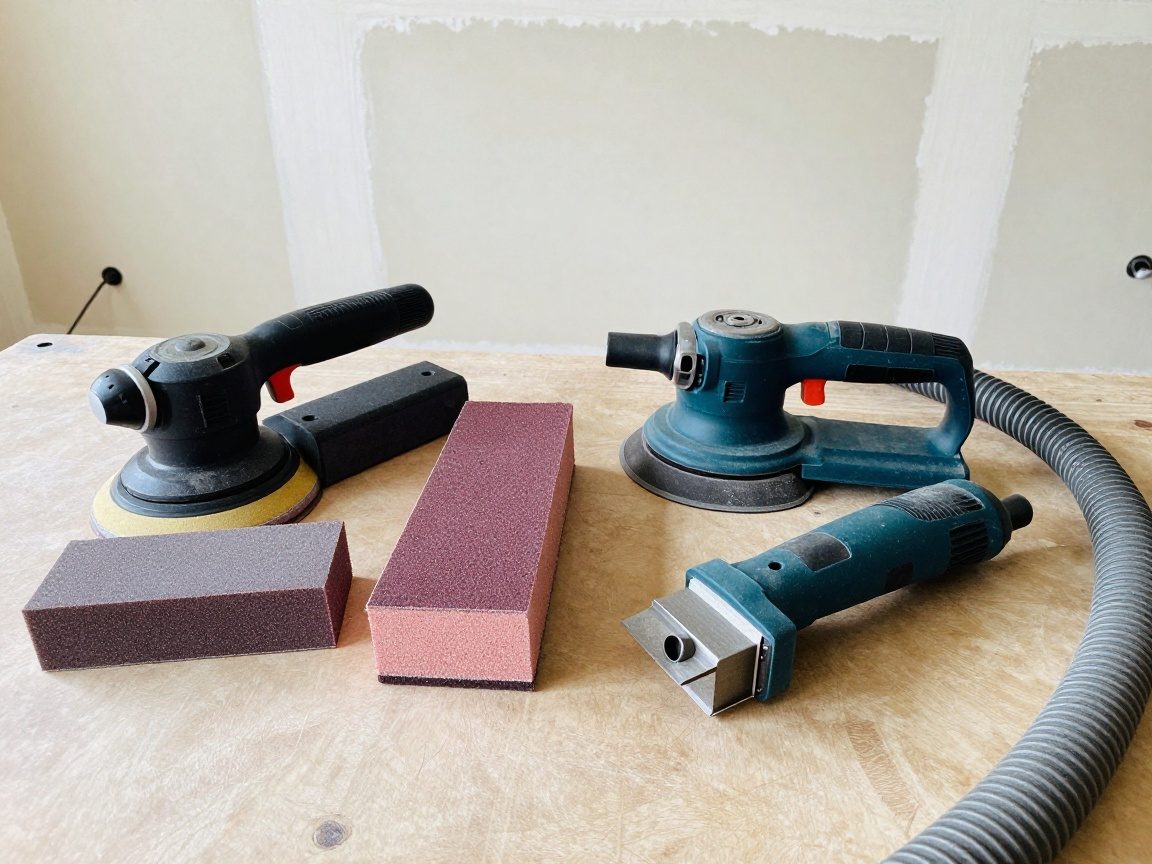 - Ein Teleskopschleifer („Giraffe“) ist ideal für Decken und hohe Wände, während ein Deltaschleifer Ecken und Kanten effizient bearbeitet; beide sollten mit Staubabsaugung gekoppelt werden.