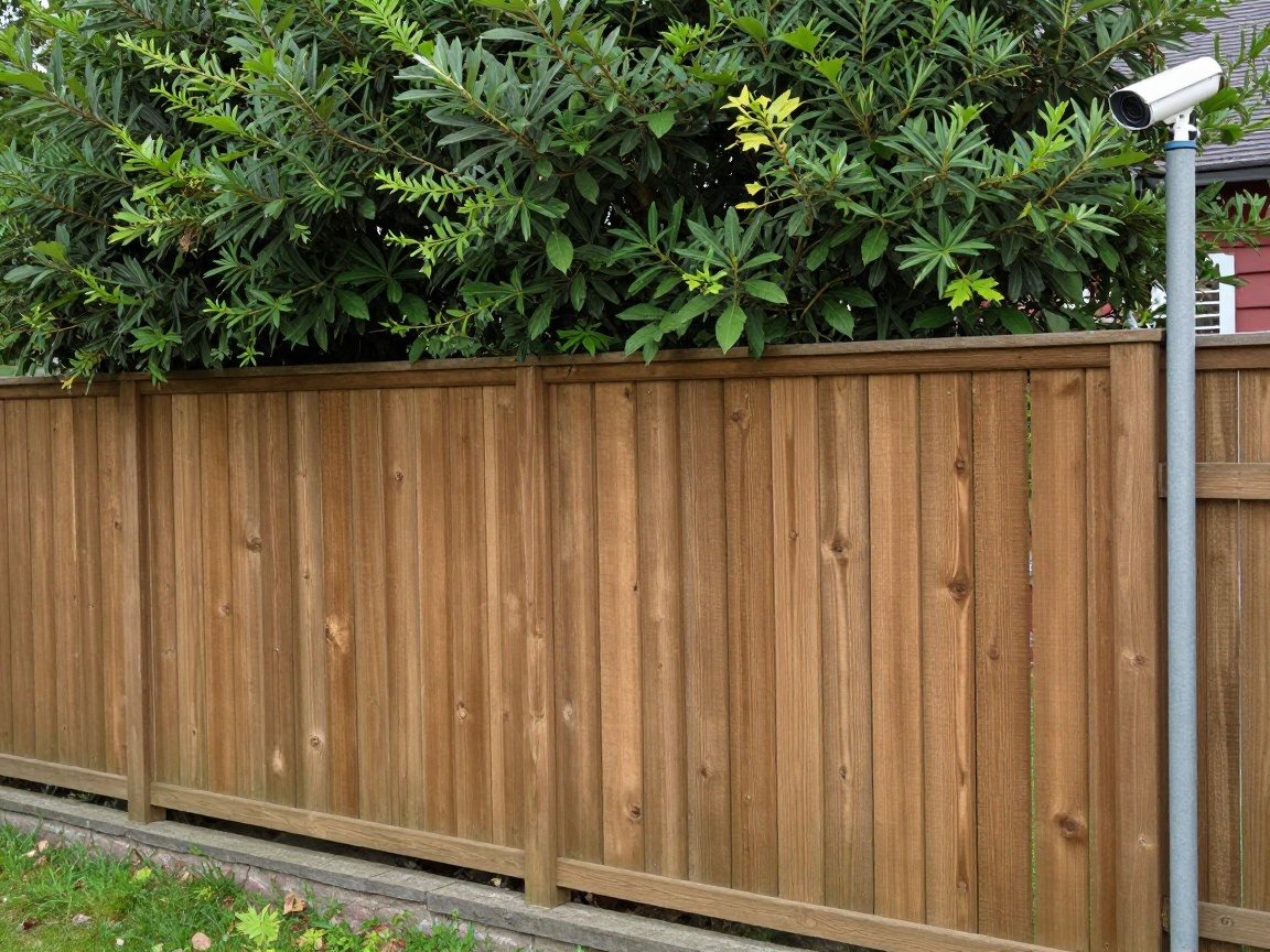 Holzzaun mit integrierter Kamera für Privatsphäre und Sicherheit